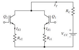 Two MOSFETs that are connected in parallel similar to Figure below carry a total current of IT= 20A. The drain to source voltage of MOSFET M1 is VDS1=2.5V and that of MOSFET M2 is VDS2 = 3V. Determine the drain current of each transistor and difference in current sharing if the current sharing series resistances are Rs1=Rs2= 0.5Ω. Find the current sharing by two parallel MOSFETs.