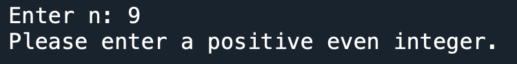 The following program is supposed to count how many even numbers are entered by the user. What line of code must be inserted in the blank so that the program will achieve this goal?