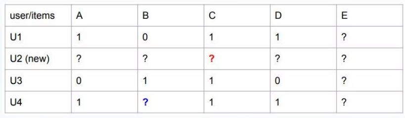 An online platform faces challenges with new users and new items, as there is limited data to provide accurate recommendations. For example, User U2 and Item E lack sufficient interaction data. What is the name of the challenge faced by the platform in this case?