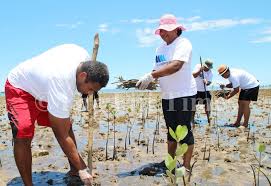 Describe what is happening in the photo below what coastal-management activity is being carried out?