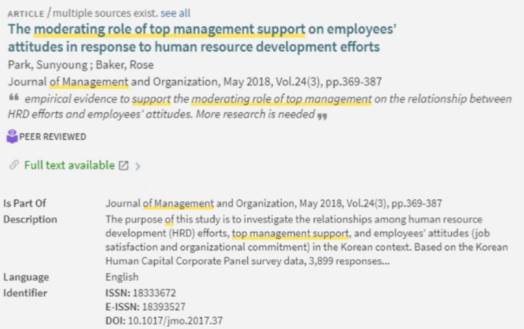 By narrowing or broadening the search terms you can improve the number of results. Question: When doing a search, if you replaced the phrase "strategic management" with the word management you would be broadening your search. True or False?