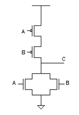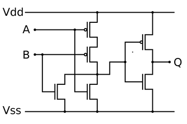 Which logic gate is implemented in the following circuit diagram?