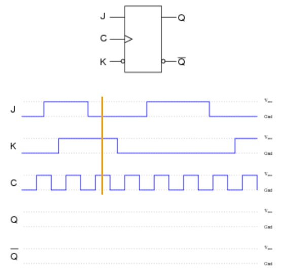 Complete this time diagram and select the output of Q at the highlighted time moment.