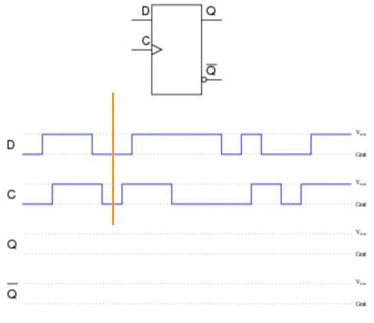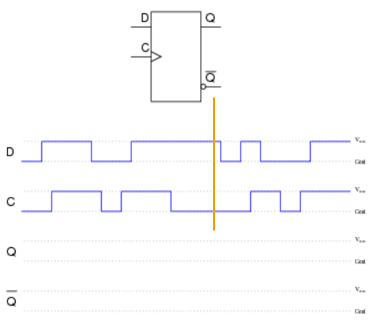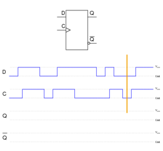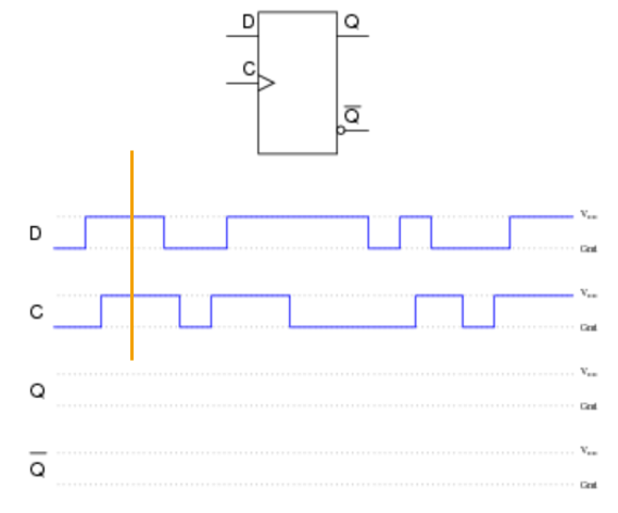 Complete this time diagram and select the output of Q at the highlighted time moment.