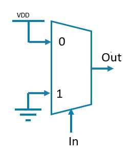 Which boolean gate is implemented in the following diagram? Note that when selector is 0 the first input gets passed, and when selector is 1 the second input gets passed.