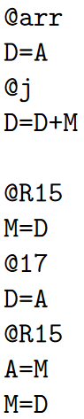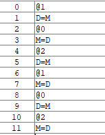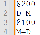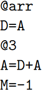 Note: Write all instructions on the same line separated by a simgle space.For example: @123 D=A M=-1
