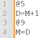 Note: Write all instructions on the same line separated by a simgle space.For example. @123 D=A M=-1