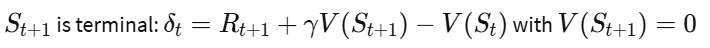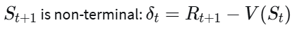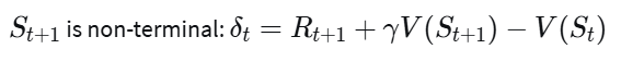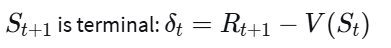 In an episodic setting, we might have different updates depending on whether the next state is terminal or non-terminal. Which of the following TD error calculations are correct? (Select all that apply)