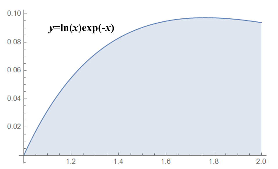 Να βρεθεί το σκιασμένο εμβαδό που περιέχεται ανάμεσα στην καμπύλη και τον άξονα στο διάστημα . Να χρησιμοποιήσετε κανόνα τραπεζίου με 25 λωρίδες.