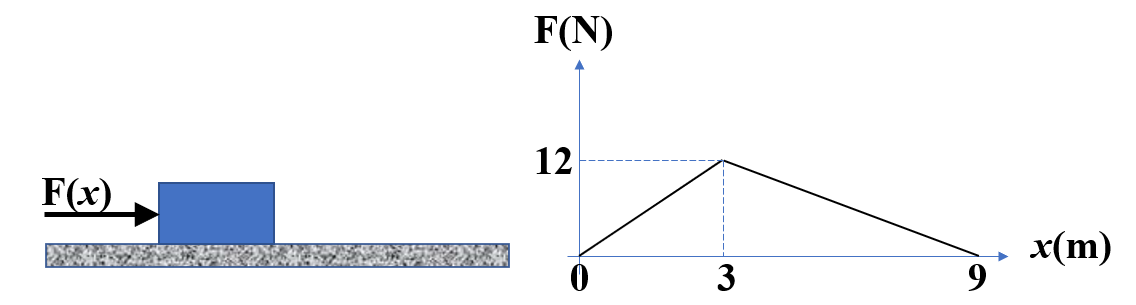 Σώμα μάζας 4.0 kg ηρεμεί σε οριζόντιο επίπεδο. Οι τριβές με το δάπεδο να θεωρηθούν αμελητέες. Κάποια στιγμή ασκείται σε αυτό οριζόντια δύναμη που μεταβάλεται με την απόσταση σύμφωνα με το γράφημα. Η ταχύτητα του σώματος όταν περνάει από τη θέση των είναι: