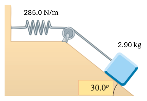 Αρχικά το σύστημα του σχήματος ηρεμεί στη θέση όπου το ελατήριο είναι στο ΦΜ του. Το σύστημα αφήνεται να κινηθεί ώστε το ελατήριο επιμηκύνεται κατά οπότε και βρίσκεται ξανά σε ηρεμία (στιγμιαία). Οι τριβές είναι αμελητέες. Να βρεθεί η επιμήκυνση .
