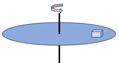 Η σημειακή μάζα είναι τοποθετημένη σε απόσταση από τον άξονα του οριζόντιου δίσκου του σχήματος. Ο συντελεστής στατικής τριβής μεταξύ σώματος και δίσκου είναι 0.55 και περιστρέφεται με συχνότητα . Να βρεθεί η μέγιστη απόσταση ώστε το σώμα να μην ολισθαίνει πάνω στο δίσκο.