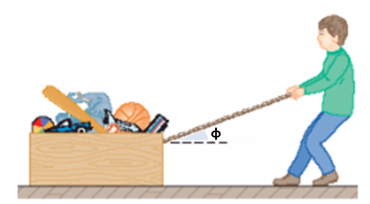 Το κιβώτιο μάζας του σχήματος βρίσκεται ακίνητο στο πάτωμα. Μεταξύ κιβωτίου και πατώματος υπάρχει στατική τριβή με συντελεστή . Το παιδί προσπαθεί να μετακινήσει το κιβώτιο τραβώντας το σχοινί με μία δύναμη υπό γωνία . Να βρεθεί η ελάχιστη τιμή της δύναμης που απαιτείται ώστε να μετακινηθεί το κιβώτιο.