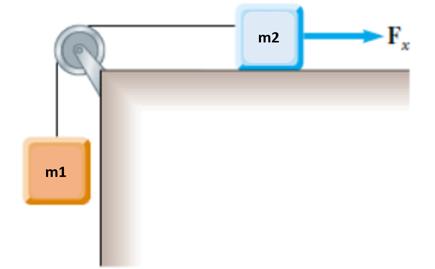 Να βρεθεί η τάση του νήματος στη διάταξη του σχήματος αν , και ο συντελεστής κινητικής τριβής μεταξύ σώματος και τραπεζιού είναι .