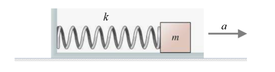 Το σύστημα ελατήριο-μάζα-πλατφόρμα του σχήματος επιταχύνεται με . Η μάζα του σώματος είναι . Η σταθερή του ελατηρίου είναι . Να βρεθεί η συμπίεση του ελατηρίου σε cm.