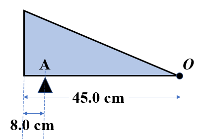 Το επίπεδο και ομογενές σώμα του σχήματος (ορθογώνιο τρίγωνο) έχει μάζα 4.5 kg. Το σώμα μπορεί να περιστρέφεται ελεύθερα γύρω από τον άξονα Ο. Να βρεθεί η δύναμη από το στήριγμα Α.