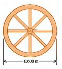 Η ρόδα του σχήματος μπορεί να προσεγγιστεί ως ένας λεπτός δακτύλιος 2.0 κιλών διαμέτρου 0.600 μέτρων, και τέσσερις ράβδοι μήκους 0.600 μέτρων και βάρους 1.5 κιλών η κάθε μία. Να βρεθεί η ροπή αδράνειας της ρόδας ως προς τον άξονά της.