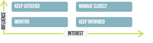 According to the stakeholder matrix tool, which action would be important for a commercial operation with high interest and influence?