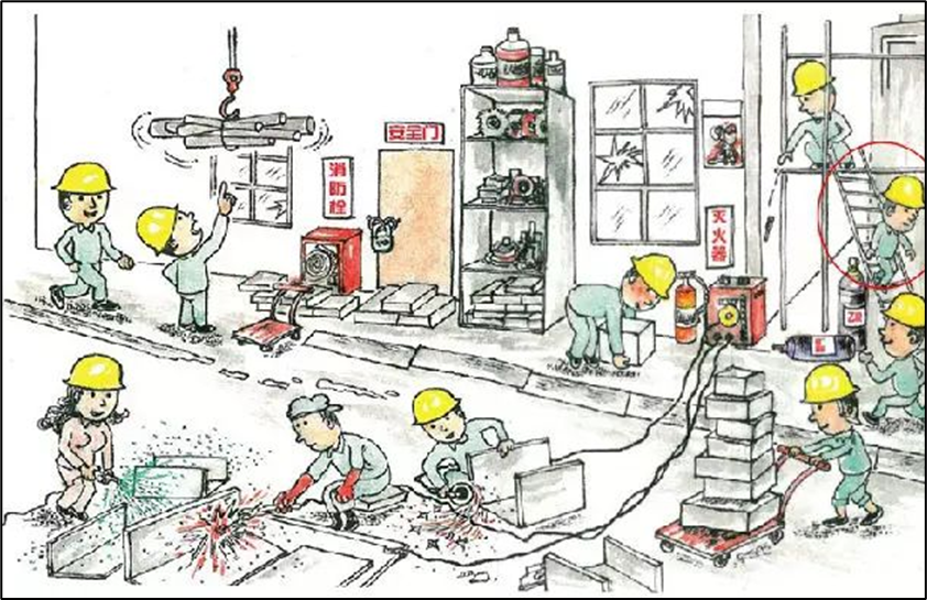 Observe atentamente a imagem , que representa um ambiente de trabalho no sector da construção civil. Identifique e descreva pelo menos 5 situações de risco.