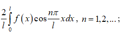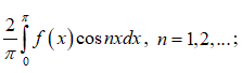 Якщо функція f(x), визначена на відрізку [–l, l], є парною, коефіцієнти її розкладу в ряд Фур’є мають вигляд: