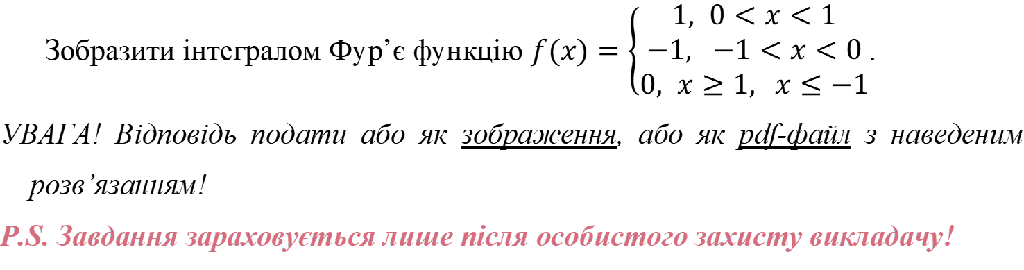 Якщо функція f(x), визначена на проміжку (–∞, ∞), є непарною, її обернене перетворення Фур’є має вигляд: