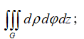 Вкажіть всі формули, які застосовують для обчислення об’єму тіла, обмеженого поверхнею за допомогою потрійного інтегралу в різних системах координат: