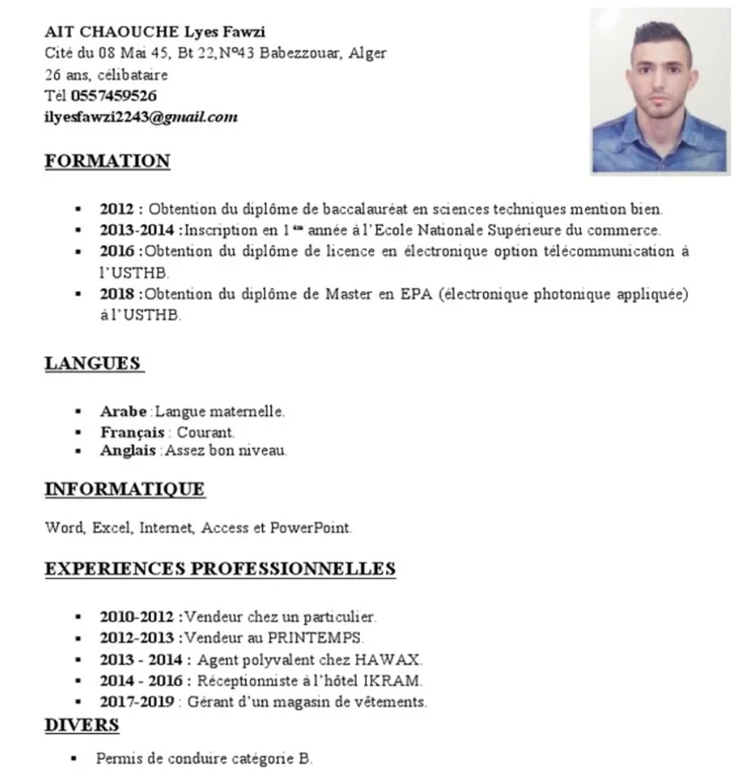 Il a obtenu son bac en 2016