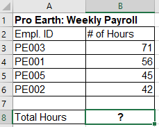 Which formula to use to successfully display the total in cell B8?