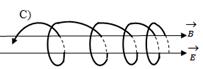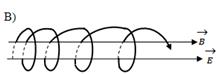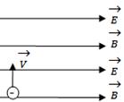 Яка з вказаних траєкторій найточніше відповідає руху електрона, що влітає перпендикулярно до ліній електричного і магнітного полів, які мають однаковий напрям, показаний на рисунку?