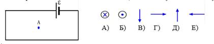 Який напрямок має магнітне поле в точці А, що лежить у площині контуру зі струмом?