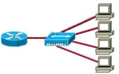 Soit le réseau suivant: Qu'est-ce que va changer si on remplace le hub avec un switch dont tous les ports appartiennent au mème VLAN (cochez deux réponses)?