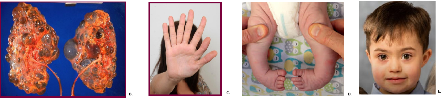 Name the syndromes from the photos of the patients’ phenotypes (open question).