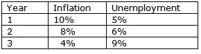 Panagrinėkite šiuos duomenis apie infliaciją ir nedarbą:
