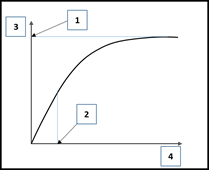Un étudiant doit déterminer les paramètres cinétiques caractérisant la transformation d’un substrat S par une enzyme E. Pour cela il a fait une expérience au cours de laquelle il a incubé E avec S pendant 1 minute et cela pour différentes concentrations de S. Il a tracé le graphe ci-dessous. Attribuer à chaque numéro la bonne donnée.