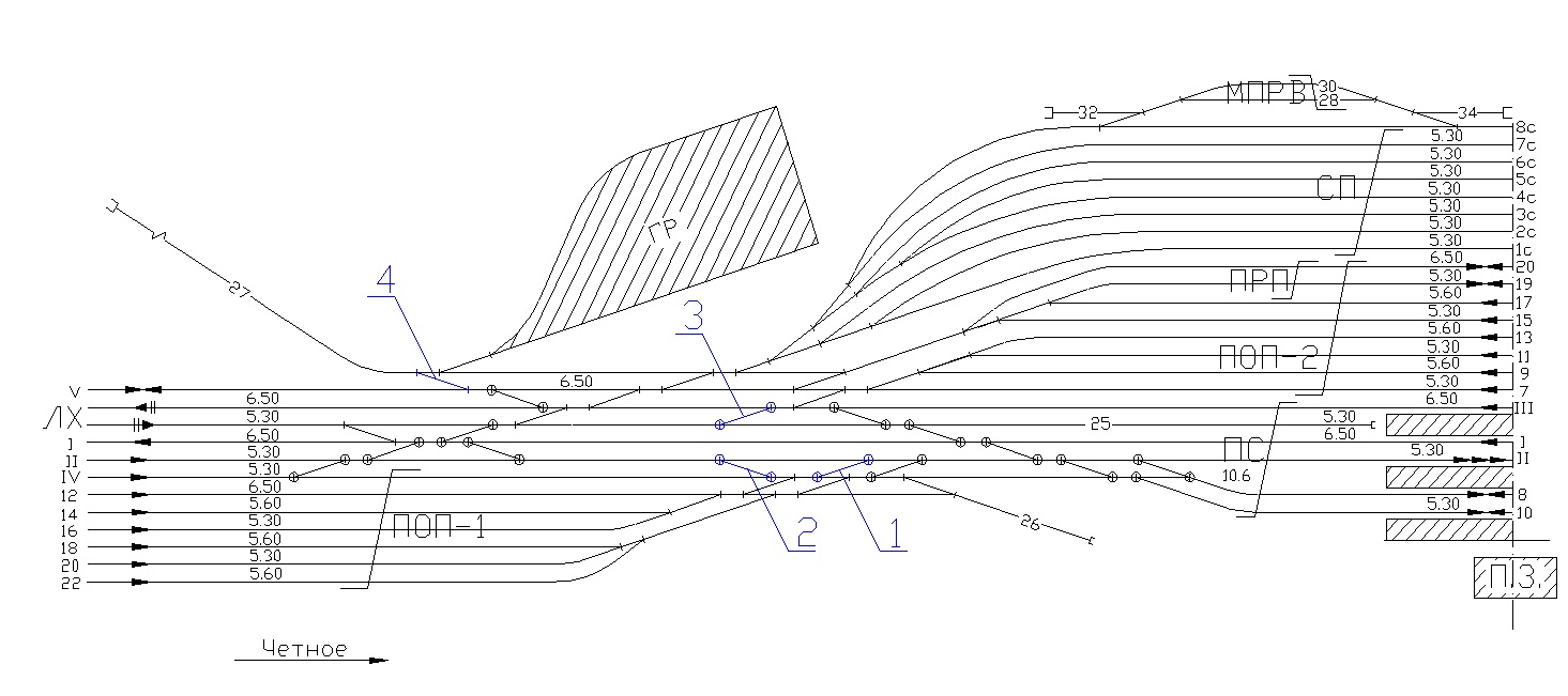 Какой из пронумерованных съездов является лишним в данной горловине: