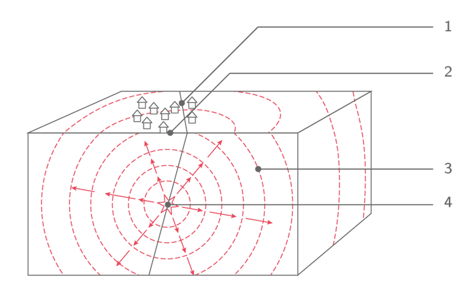 Lors d'un séisme, l'élément 1 est appelé :