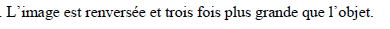 On considère un miroir sphérique concave de rayon R = 1,2 m. Quelle est la position de l’objet dont l’image est réelle, droite et deux fois plus petite que l’objet?