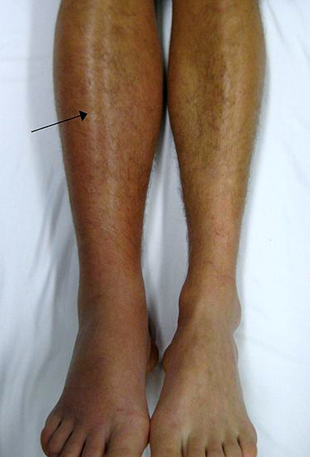Par kādu patoloģiju lb. kājas apakšstilbā varētu domāt?