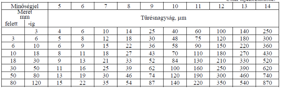Válassza ki a Ø 18h6 mm csapra melyik tűrés vagy tűrésmező igaz az alábbi táblázat részlet alapján!