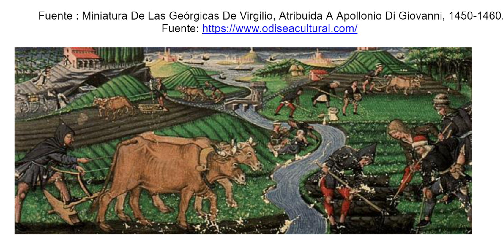 Observa con atención la obra pictórica que da cuenta de la forma de vida de los campesinos dentro del Feduo durante la Edad Media.