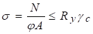 Переріз центрально стиснутих колон підбирають, виходячи з умови: