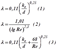 Для гідравлічно гладких труб коефіцієнт гідравлічного тертя визначають за формулою: