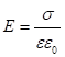 Формула напруженості електричного поля нескінченої рівномірно зарядженої площини має вигляд: