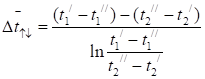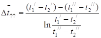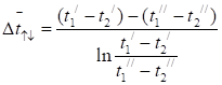 Середньологарифмічний температурний напір для протитоку визначається