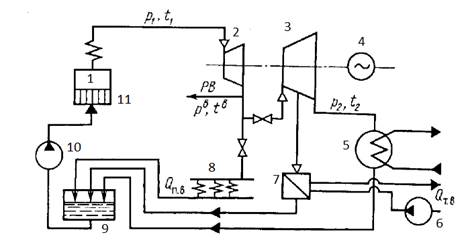 Яка позиція відповідає промисловому відбору пари на схемі найпростішої ТЕЦ з регульованим та нерегульованим відбором пари ?…