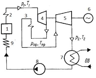 Яка позиція відповідає водяному економайзеру на схемі паросилової установки з проміжним перегрівом пари ?…