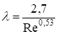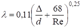 Вкажіть формулу для визначення λ в зоні ламінарного режиму опору: