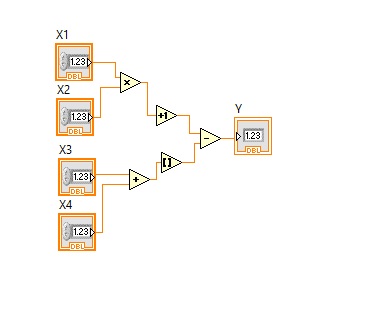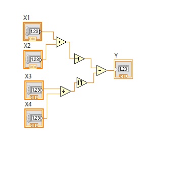 Складіть схему на рисунку, задайте вхідні дані. Виведіть результат Y, та вкажіть його значення, при заданих наступних значеннях входів: X1=10, X2=24, X3=13, X4=23