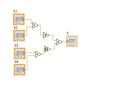 Складіть схему на рисунку, задайте вхідні дані. Виведіть результат Y, та вкажіть його значення, при заданих наступних значеннях входів: X1=78, X2=26, X3=60, X4=61