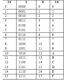 Системи числення, у яких представлені числа таблиці – це: